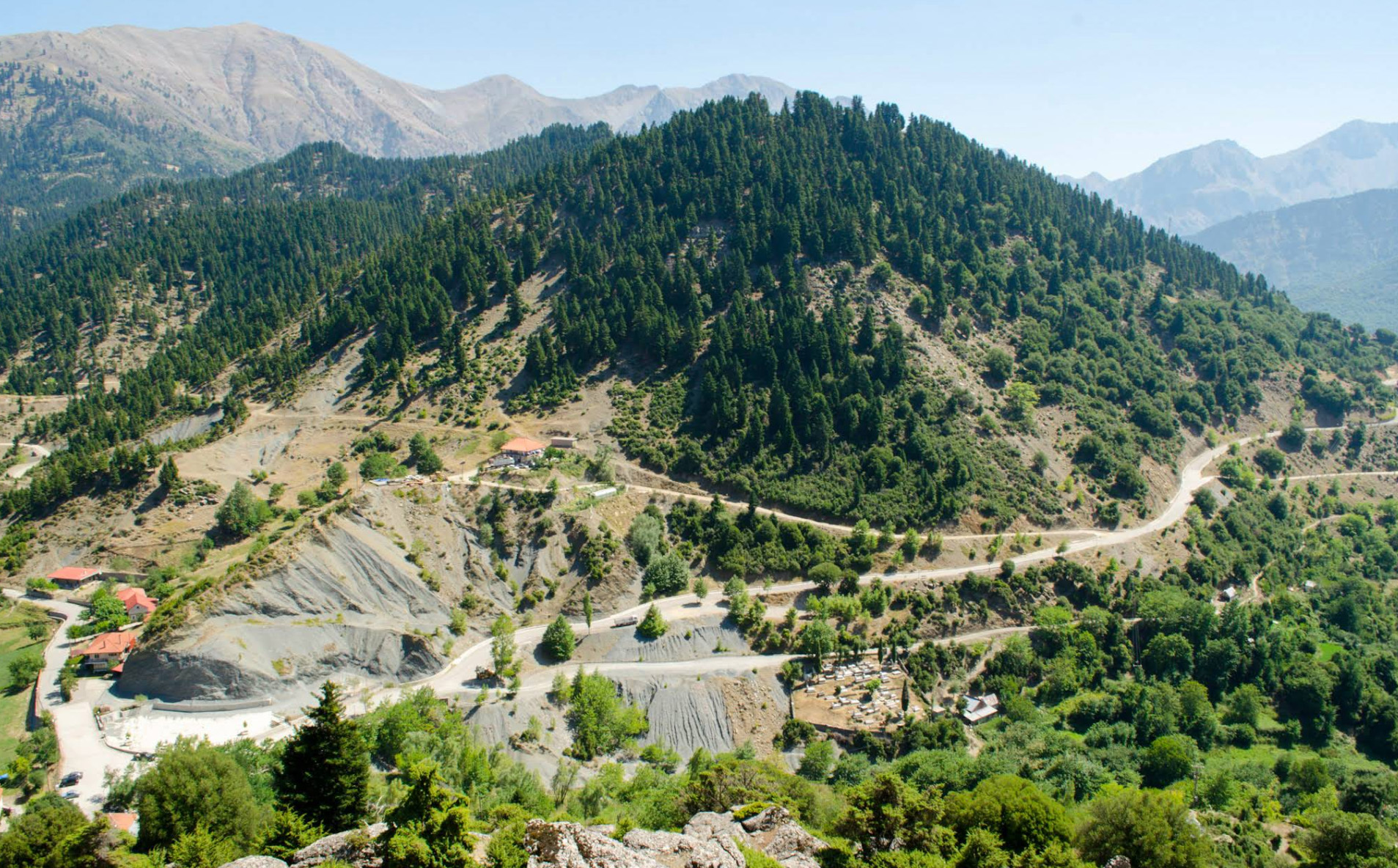 Kedra is a small village located at the northwest part of Evritania. It is built in an altitude of 710 m. The village was initially named Horigovo. The current name was given to the village in 1928. It produces the famous black wine, tsipouro. A deep canyon passes through the village creating a wild natural scenery.
