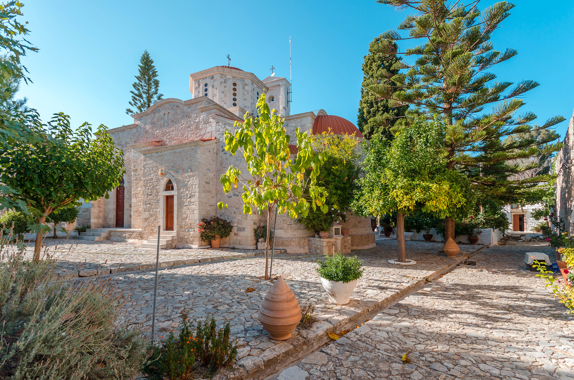 A traditional village located along the road from Agios Nikolaos to Ierapetra, built around a hill with breathtaking views. The village was once the seat of the Ierapetra Bishopric, from which it takes its name. Visitors will enjoy a nostalgic stroll through its narrow streets, lined with well-preserved historic houses, and can relax with a coffee at the charming village square under centuries-old plane trees. Among the village¢s notable landmarks is the Koulés Tower, built in 1868 by Hussein Auni Pasha. In the heart of the village stands the Church of Panagia Eftatrulis, founded in 1900, a stone basilica with a dome. Equally impressive is the Church of Saints George and Charalambos, dating back to the 11th century. Remarkably, this church was constructed using river stones and a mixture of coarse sand, lime, and volcanic soil.