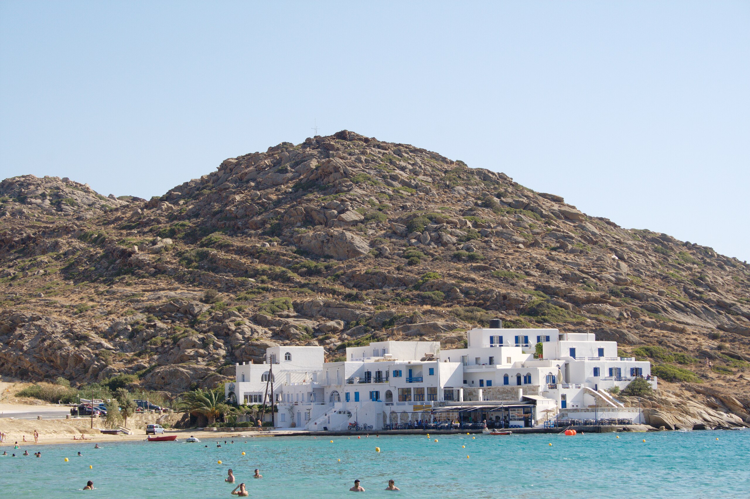 The coastal settlement of Mylopotas is located just 3km from Chora. The central road begins from the port, passes through the capital and ends in its dreamy beach. One of the most famous and cosmopolitan beaches of the island. It has been awarded with the Blue Flag. It is a highly organized beach where you can relax enjoying all comforts or practice on water sports. There is a windsurfing and diving school in the beach. The trained teachers will be more than pleased to help you. Mylopotas' beach has golden shore and clear waters. It is considered one of the most beautiful in Aegean Sea. If you have an appetite you can enjoy the local cuisine in taverns near it.
