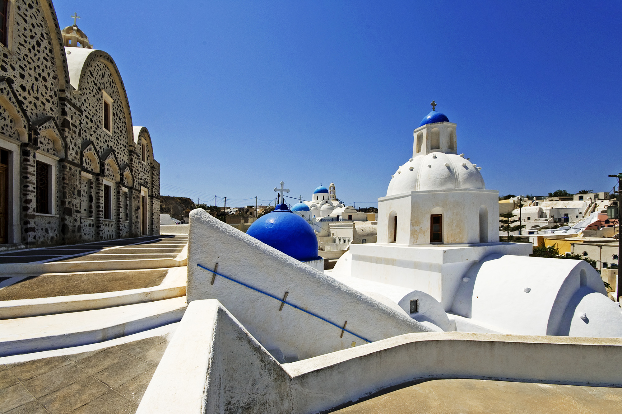 Pyrgos is a beautiful village on the hill-side of prophet Ilia on the highest point of the island. It has a glorious view, all Santorini, lies before your eyes. It is only 7,5 km away from Fira. Pyrgos was the capital of the island untill 1800. Worthseeing is the monastery of prophet Ilia that is built on the top of the homonym hill, as well as, Theotokaki, one of the oldest churches in Santorini that was possibly built in the 10th century. You will also see Kasteli, the medieval castle of the island.