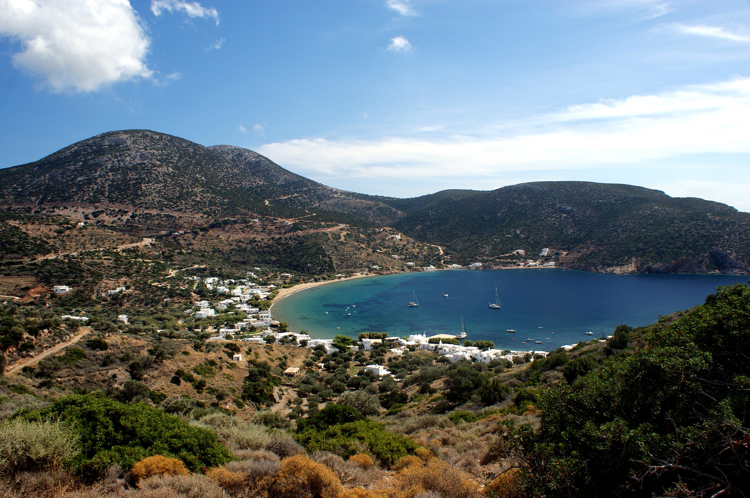 In the west part of the island is the small coastal village Vathi. The closed homonym cove protects the graphic settlement that is a characteristic specimen of the architecture of Cyclades islands. You can reach Vathi by following the new asphalt road from Apollonia or with boats that tour around the island. The village¢s beach is famous for her clear, shallow waters ideal for children and for those who can¢t swim. In the taverns near the beach, eat fresh fish and try the local recipes. Vathi has a long history in pottery. Many important craftsmen come from this village. Don¢t forget buying beautiful ceramics in various patterns. One of the most important sights of the region is the monastery of taxiarchs built in the 16th century. There are rooms to let in the village.