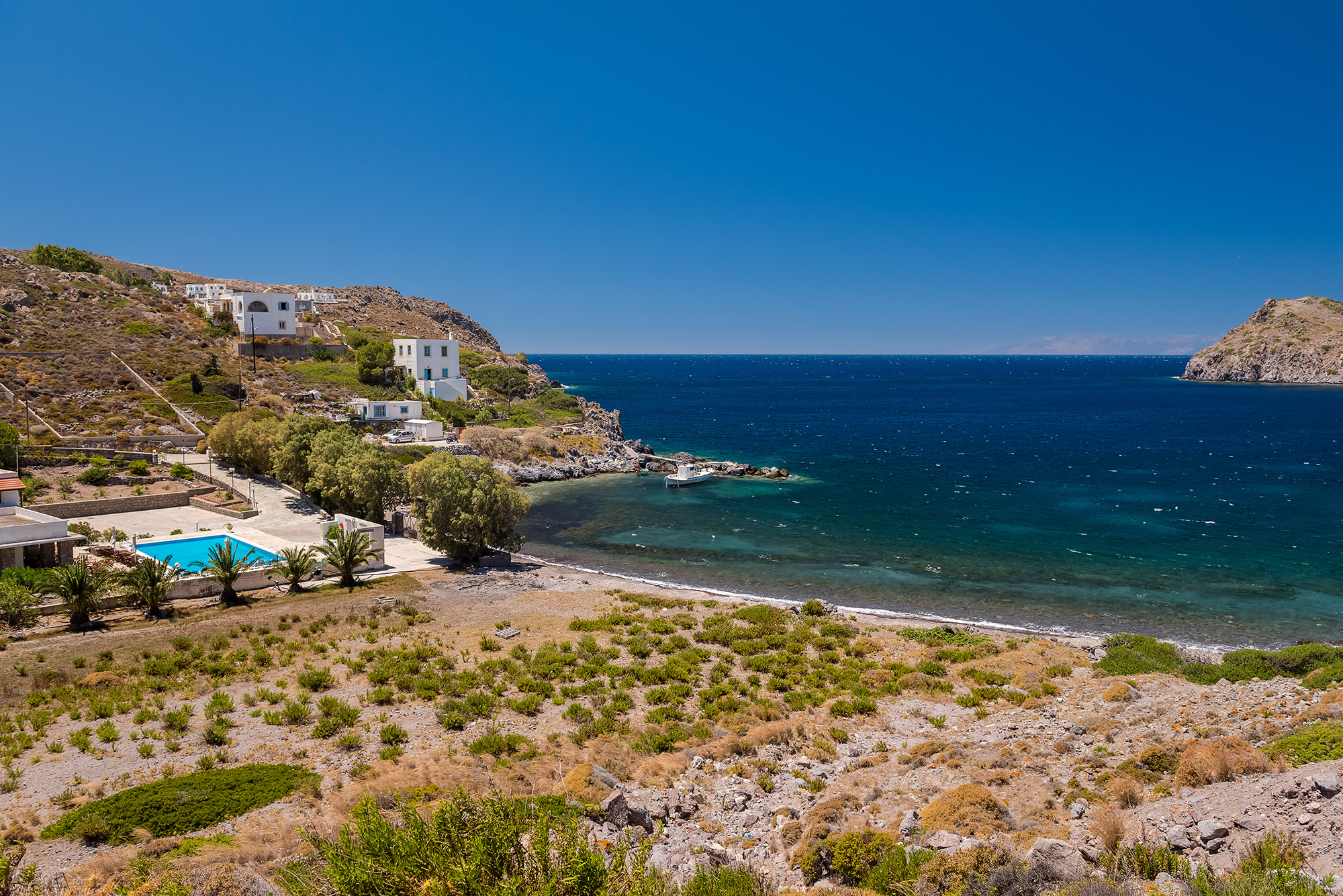 Merikas, a picturesque seaside village on the island of Patmos, stands out for its peaceful atmosphere and crystal-clear waters. Characterized by traditional houses, tavernas, and cafés by the sea, it offers visitors the chance to enjoy local cuisine with views of the Aegean Sea. Merikas is an ideal destination for travelers seeking relaxation, swimming, and an authentic island experience, while its location provides easy access to nearby beaches and attractions on Patmos.