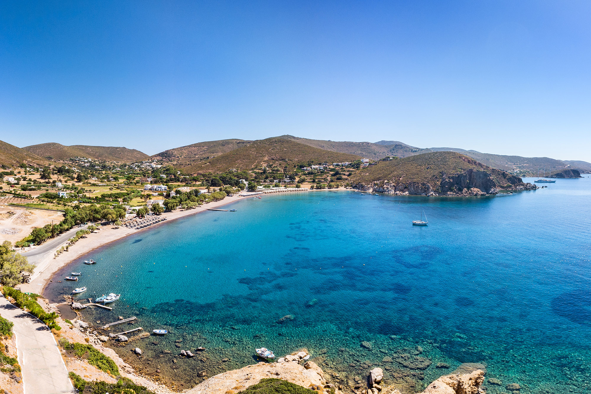 Kampos is in the north part of the island, 6km from Skala and 1km from Chora. It is a beautiful mediterranean village built in a verdurous region. It is one of the most developed in tourism regions of Patmos. It has important religious sites, like the church of Saint Nikolaos Evdimos built during the 12th century. It is said that this thaumaturgy icon of the saint protects sailors. Also the monastery of Panagia Apollou in location Therma near the homonym thermal sources. It is worth visiting the church of Panagia Geranou built on the top of the homonym hill with a glorious view. In Kampos you will swim in the settlement¢s beach with crystal clear waters. You can also practice on water sports. Very close are the beaches Vagia and Livadi with pebbles and clear waters. But the most beautiful beach in the region is Lampi. Distinguishes for her colourful pebbles that shine under the sun rays. As for your accommodation you will find rooms to let in Kampos. There are a lot of taverns, restaurants, coffeehouses and bars for your nightlife.