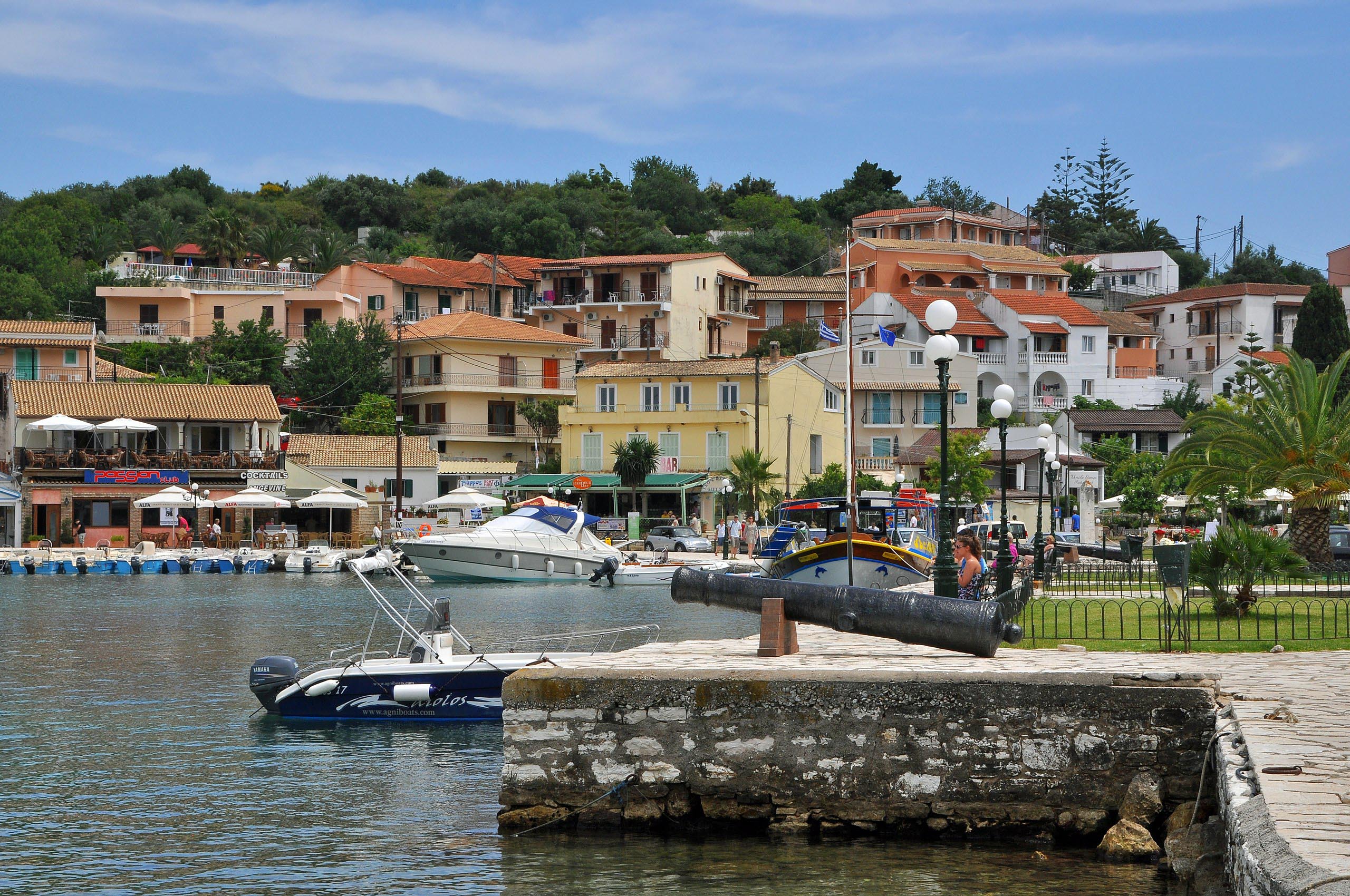 In north Corfu, 37km from the city we meet Kassiopi. It is the domicile of the homonym municipality and the biggest village in north Corfu. Until recently Kassiopi was known as graphic fish village with a beautiful beach. But in the last years it is developing with exponential rhythms in a modern tourist resort. There are many hotels and rooms to let in Kassiopi that offer all sort of comforts. Kassiopi also has a lot of bars and clubs that attract young people and make it a cosmopolitan summer resort. The beach of Kassiopi and the, awarded with the Blue Flag, beach of Klamiona distinguish for their good organization. There, you have the opportunity to try water sports. The region apart from a vivid nonce, has a rich historic past. It flourished during Roman times and according to the tradition the emperor Neron visited it. Among historic monuments distinguish the remains of the castle built during the period of Andigavnon dominance(1267-1836)which was considered one of the most strong castles of the corfiat countryside. One of the most important religious monuments of Corfu is the church of Panagia Kassiopitra said to be built on the remains of the old temple of Kassiopos Zeus. The church was built during the first years of Christianity, was ruined by Turkish and rebuilt by Venetian.