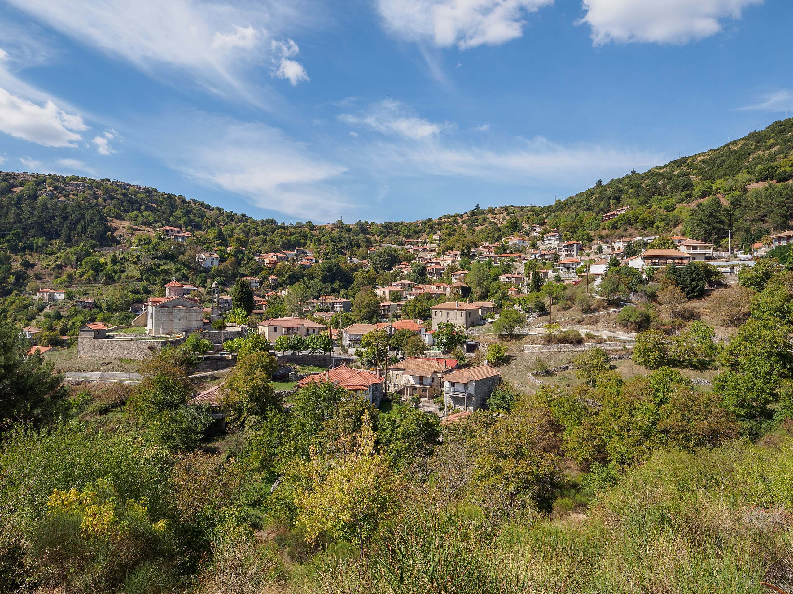 Magouliana is a lush, green village of mountainous Arcadia. It is built on a slope of Mount Mainalo at an altitude of 1,360 m and is the highest village in the Peloponnese. A distinctive feature of the area is that it is surrounded by a beautiful, dense fir forest. The settlement is built on the crest of a large natural curve and unfolds amphitheatrically along the mountainside. It is located 12 km west of Vytina and 58 km from Tripoli. Magouliana is a picturesque village with stone-built houses, representative examples of traditional architecture, which add their own charm to the stunning overall landscape. On the hill above the village stands the Byzantine Castle of Magouliana. The village is also home to noteworthy churches worth visiting. The most remarkable is the Church of the Dormition of the Virgin Mary, dating back to the 17th century. The church features an exceptional carved wooden iconostasis, considered one of the finest in Europe, along with intricate gilded icons. The iconostasis is the work of the Epirus master craftsman Christodoulos. It was created using the so-called "pierced" carving technique, leaving open spaces between the carved motifs, which mainly depict relief scenes from the Old and New Testaments.