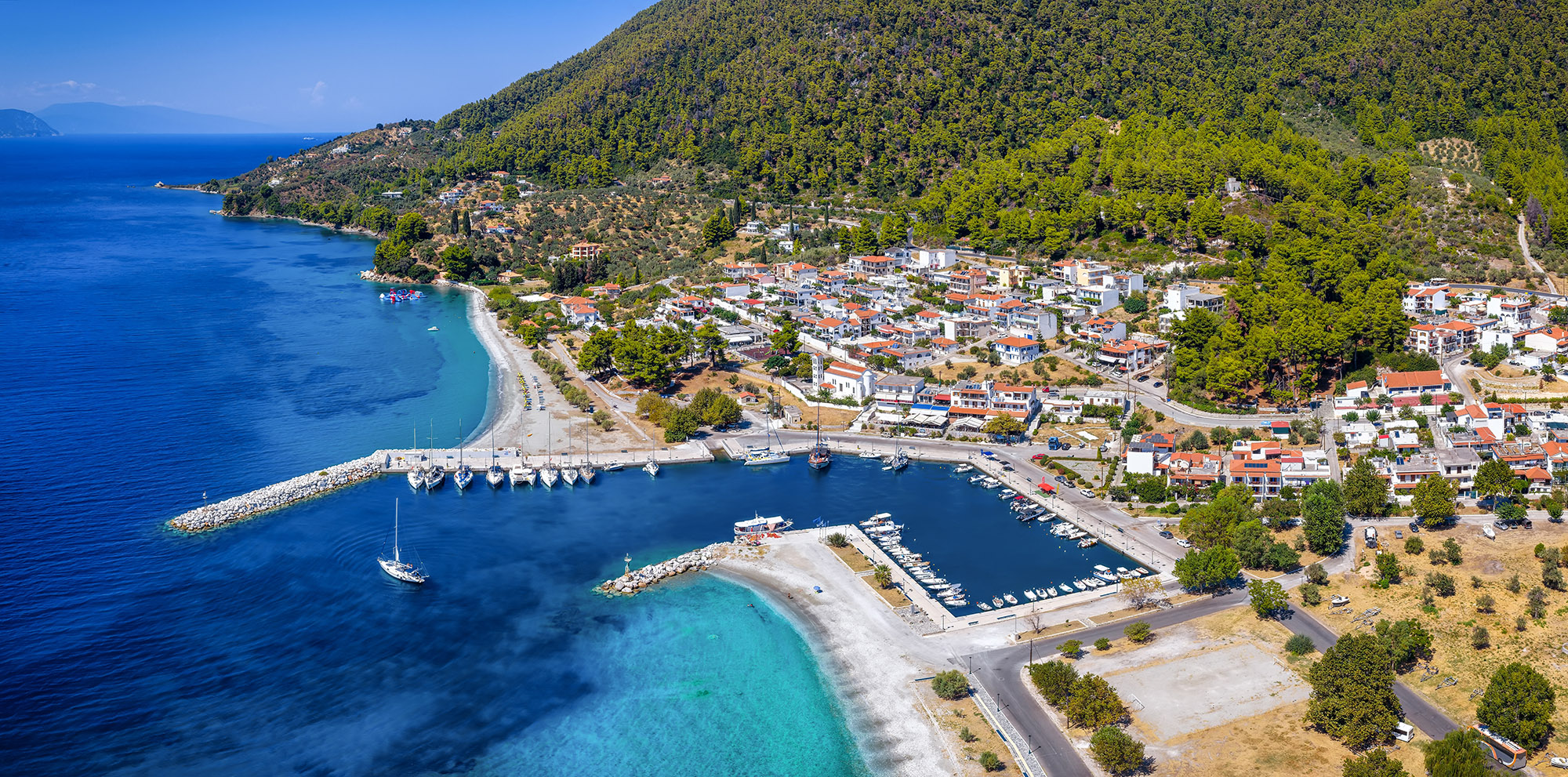 17km from Chora we meet Elios beach and the new established settlement Neo Klima. It was founded by the residents of Kato Klima, which was totally destroyed by landslides. This new village is built amphitheatrically in a green hill with a spectacle view. Houses are built according to the traditional style. Right in front of the settlement, in the sea, has been created a marina hosting small boats. You can swim in the extended beach of Elios, in the beach of Hovolos and in the small beaches of Agia Paraskevi, Kavos and Andrina. In Neo Klima you will find hotels and rooms to let. The region is ideal for those avoiding crowded tourist resorts and want to be close to nature.